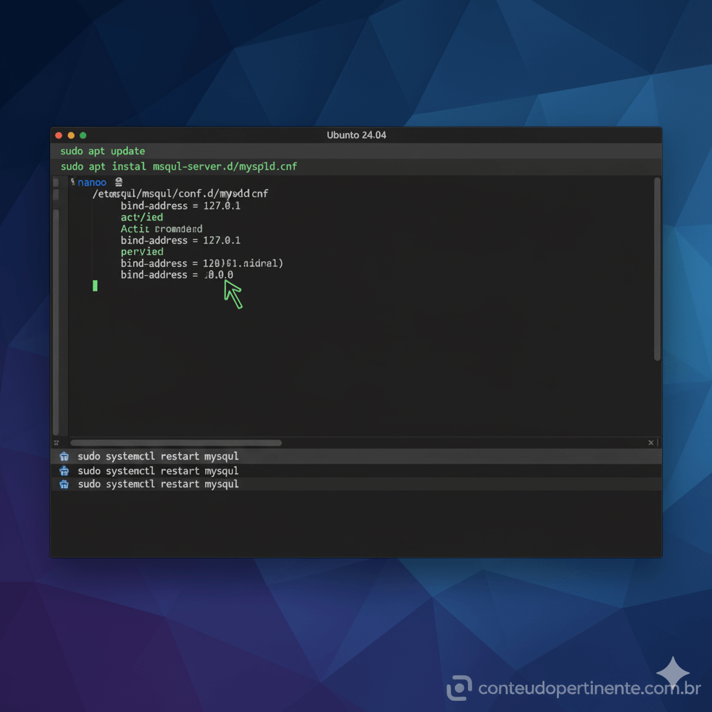 Agora, reinicie o serviço MySQL para aplicar as novas configurações: